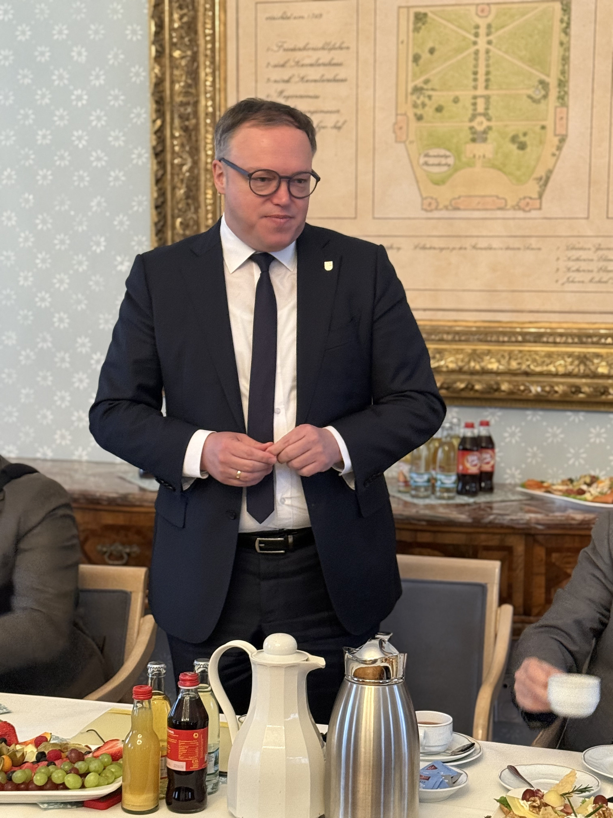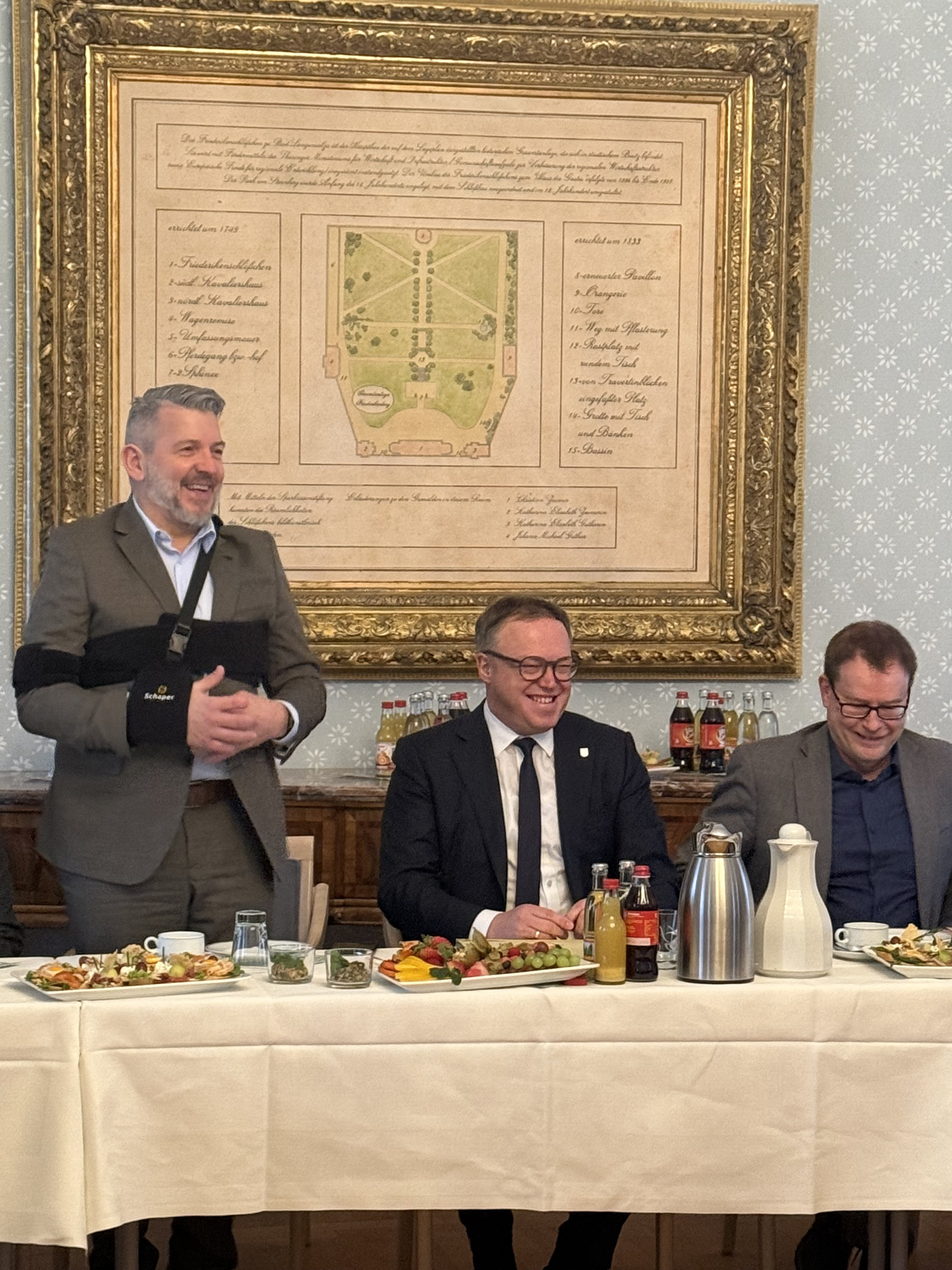 Der Auftakt fand im malerischen Friederikenschlösschen in Bad Langensalza statt. Landrat Thomas Ahke hatte es sich zum Ziel der Landkreistour gesetzt, auch den lokalen Akteuren aus Vereinen, der Politik und den Ortschaften die Möglichkeit zu geben, ihre Anliegen, Herausforderungen und Zukunftswünsche direkt beim Ministerpräsidenten anzusprechen. Der Tag begann daher mit einem gemeinsamen Frühstück mit den Bürgermeistern des Landkreises, bei dem das Thema „Kommunale Finanzen“ im Mittelpunkt stand.