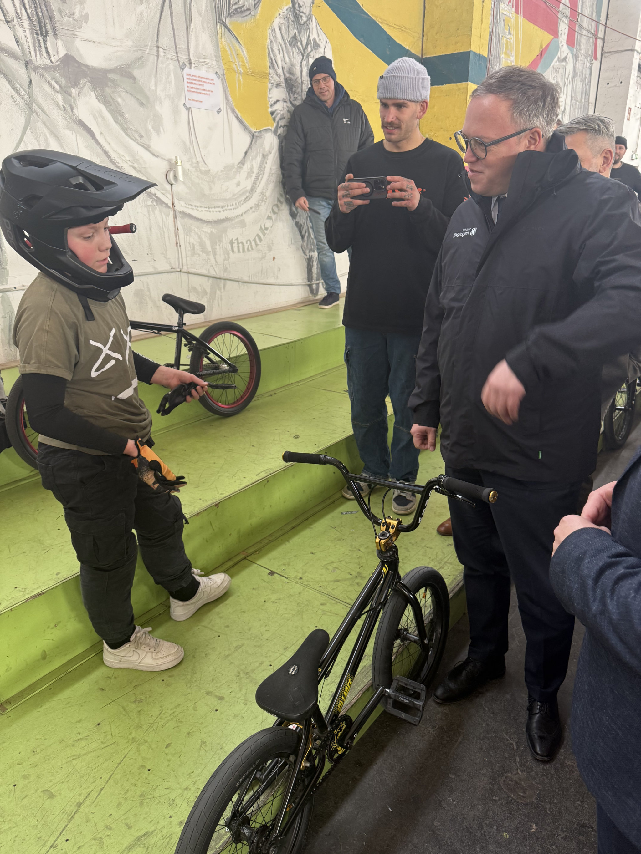 Ein Highlight des Tages war der Besuch des Thuringia Funparks, wo sich Mario Voigt von den beeindruckenden BMX- und Scooter-Stunts der Kinder und Jugendlichen begeistern ließ. Für die jungen Besucher war es ein besonderes Erlebnis, dem Ministerpräsidenten ihre Tricks zu zeigen.