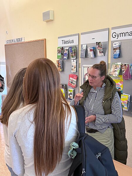Die Schülerinnen und Schüler konnten an den Ständen direkt ins Gespräch mit Vertretern aus Wirtschaft, Verwaltung, Medizin oder Handwerk treten und sich bei Unternehmensvorträgen informieren.