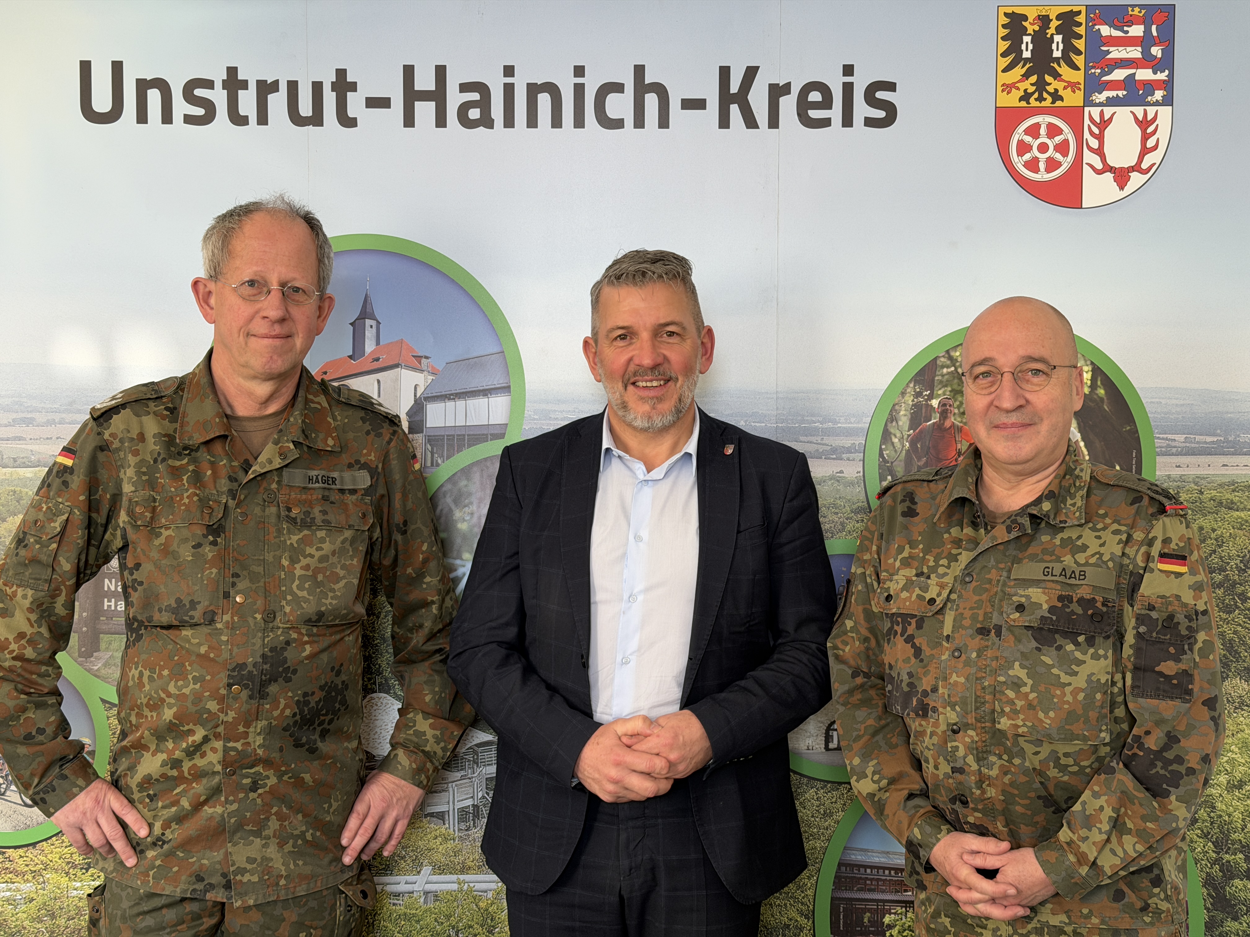 In der vergangenen Woche fand hierzu ein Gespräch mit dem Kreisverbindungskommandeur, Oberstleutnant Häger sowie Oberst Glaab, Kommandeur des Landeskommandos Thüringen statt. Im Mittelpunkt des Austauschs stand unter anderem der neue Operationsplan Deutschland (OPLAN DEU), der veränderte Anforderungen an Behörden und kommunale Krisenstrukturen mit sich bringt.