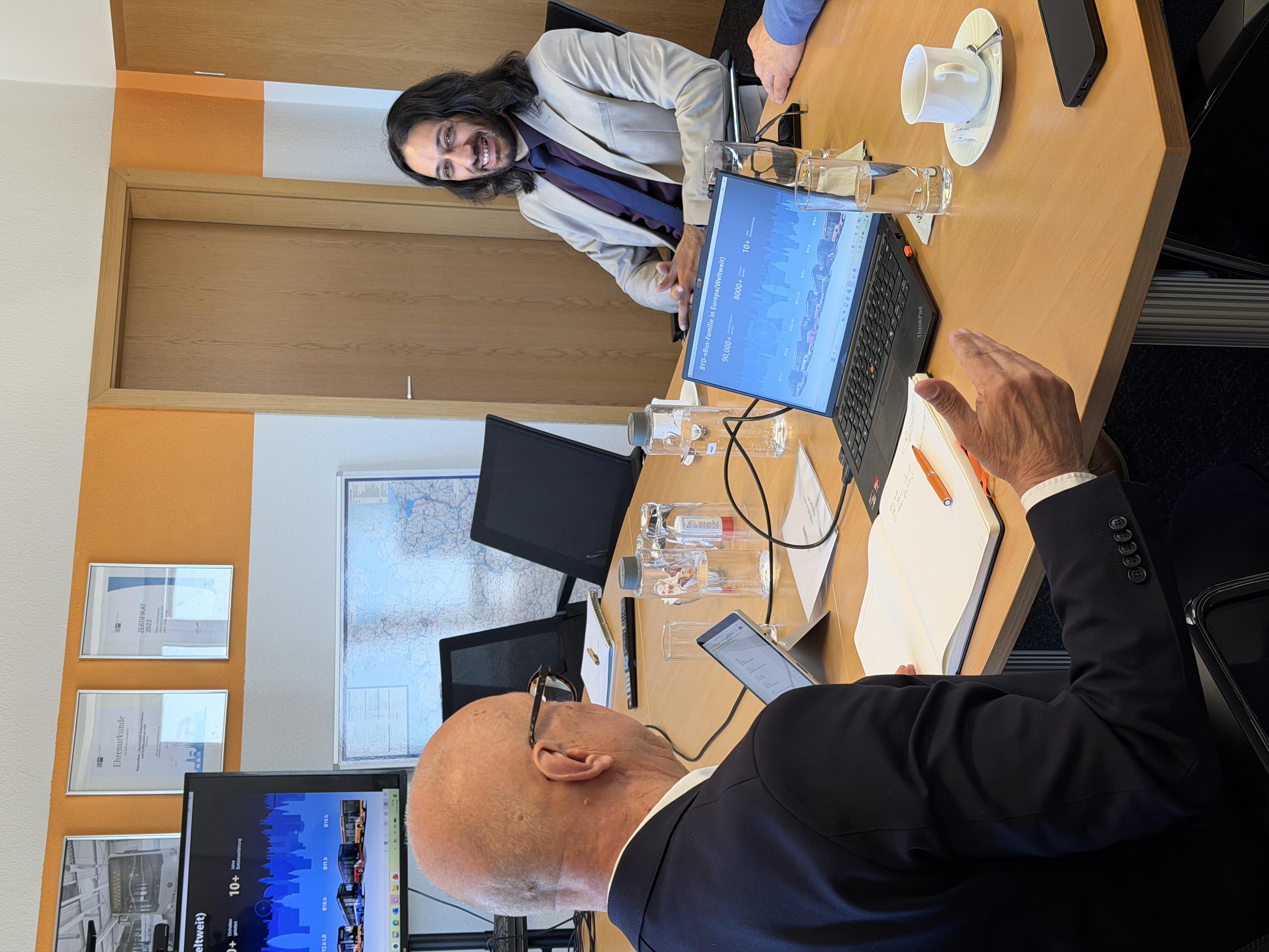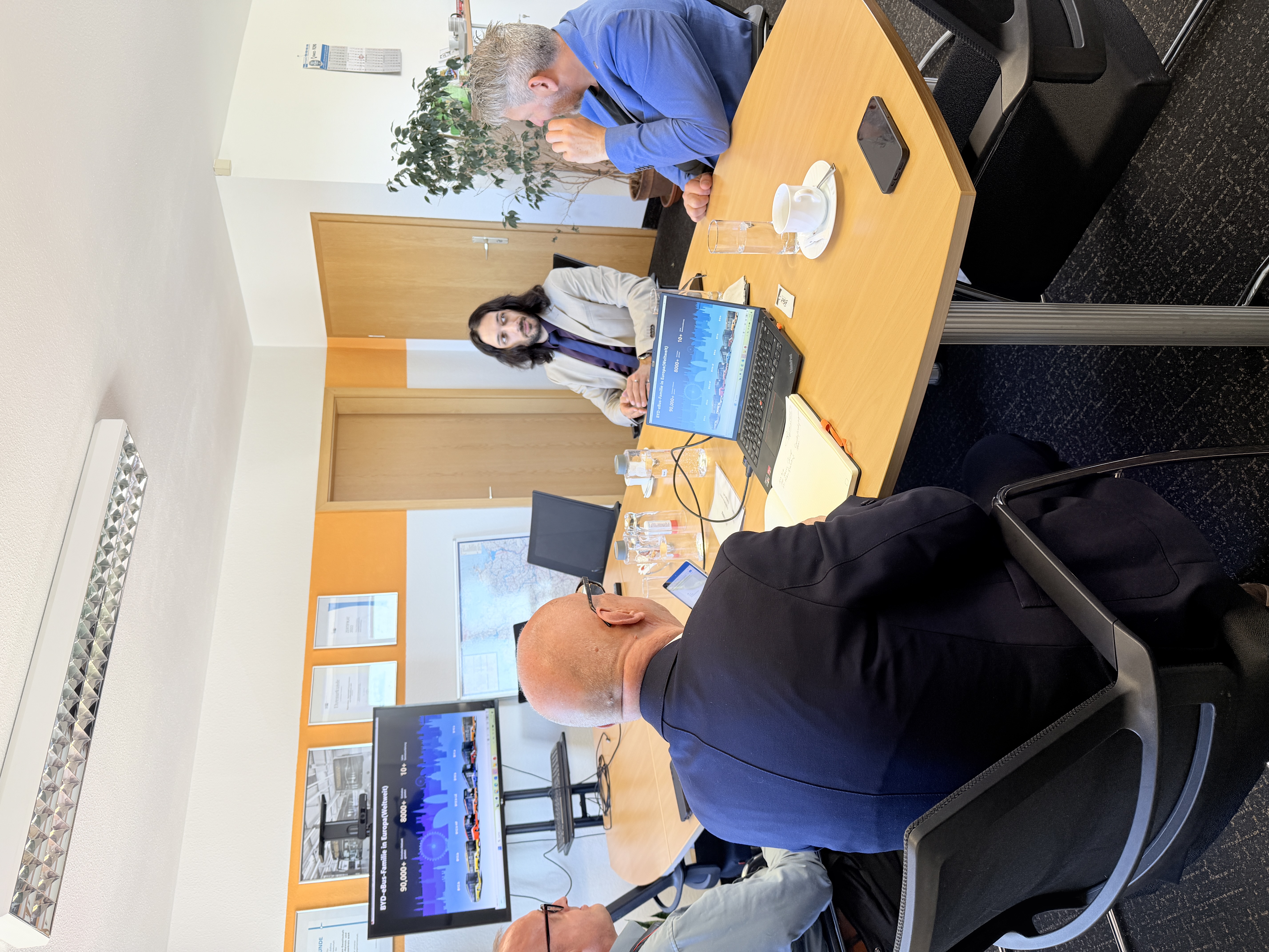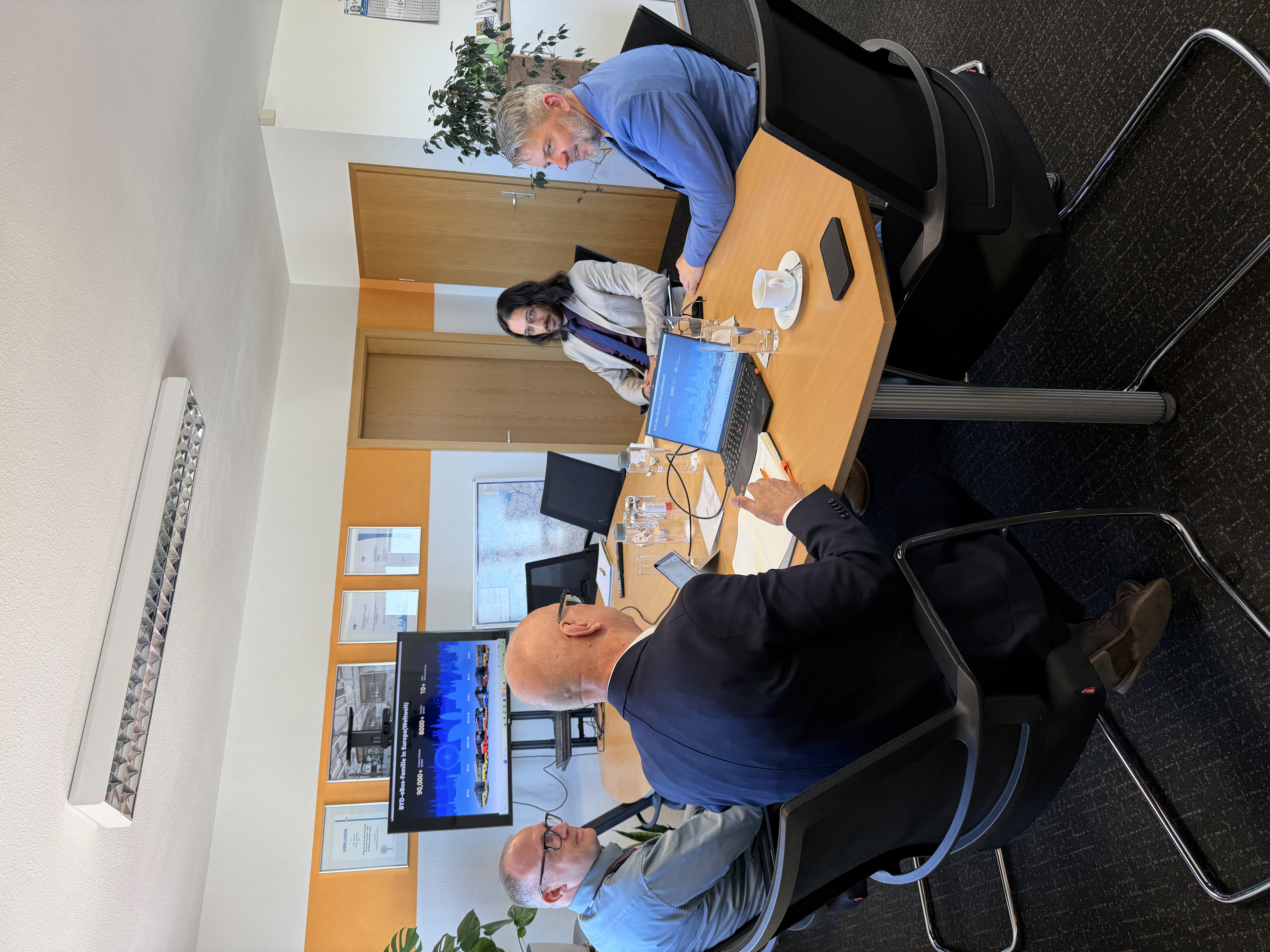 Vor diesem Hintergrund fand in der vergangenen Woche ein fachlicher Austausch im Unstrut-Hainich-Kreis statt. Landrat Thomas Ahke empfing gemeinsam mit Rahul Kumar, Geschäftsführer der Regionalbus GmbH, den Vertreter Horst Woitschig von BYD Europe B. V..