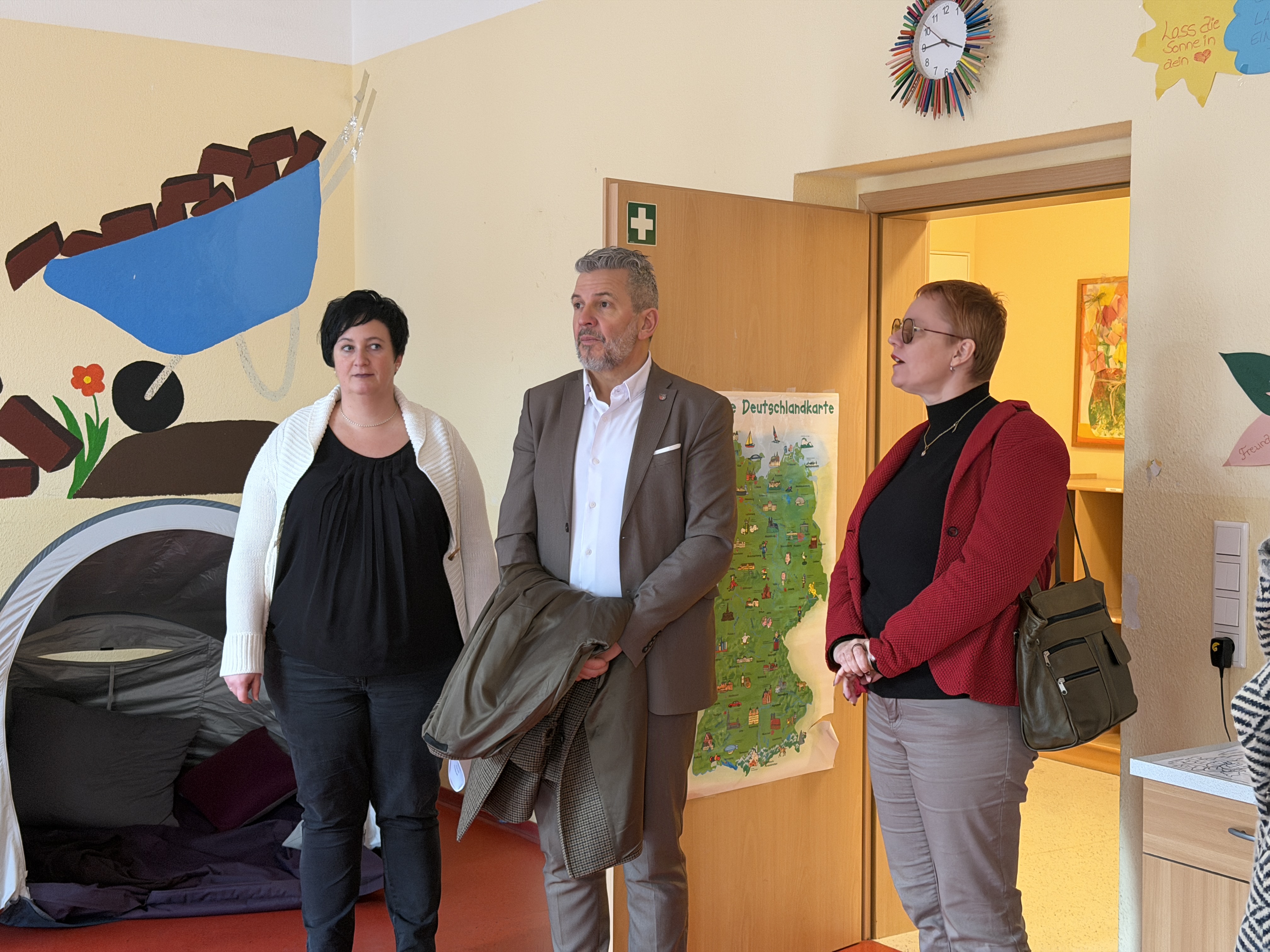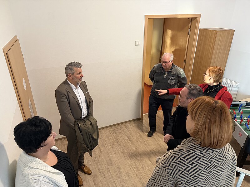 Am Standort Bruchstedt wurden sie von dem Schulleitungsteam Sabine Stilzebach und Melanie Fahrenberger sowie von Erwin Gerlach, Geschäftsführer der THEPRA, empfangen. Eindrucksvoll schilderten die Schulleiterinnen die tägliche pädagogische Arbeit: In der Schule werde nicht nur unterrichtet, sondern gezielt auf das Leben vorbereitet. Die pädagogische Konzeption folgt dem Leitgedanken „Selbsttätig am Leben lernen – individuell für jeden“. Beschult werden Kinder und Jugendliche im Alter von 6 bis 18 Jahren mit primärem sonderpädagogischem Förderbedarf in der geistigen Entwicklung sowie mit zusätzlichen Beeinträchtigungen in den Bereichen Sprache, körperlich-motorische Entwicklung sowie emotionale und soziale Entwicklung. Aktuell werden im Förderzentrum 54 Schülerinnen und Schüler beschult, davon 50 aus dem Unstrut-Hainich-Kreis. Die hellen, freundlichen Räumlichkeiten sind optimal auf die besonderen Bedürfnisse der Schülerinnen und Schüler zugeschnitten und unterstützen die pädagogische Arbeit in besonderer Weise.