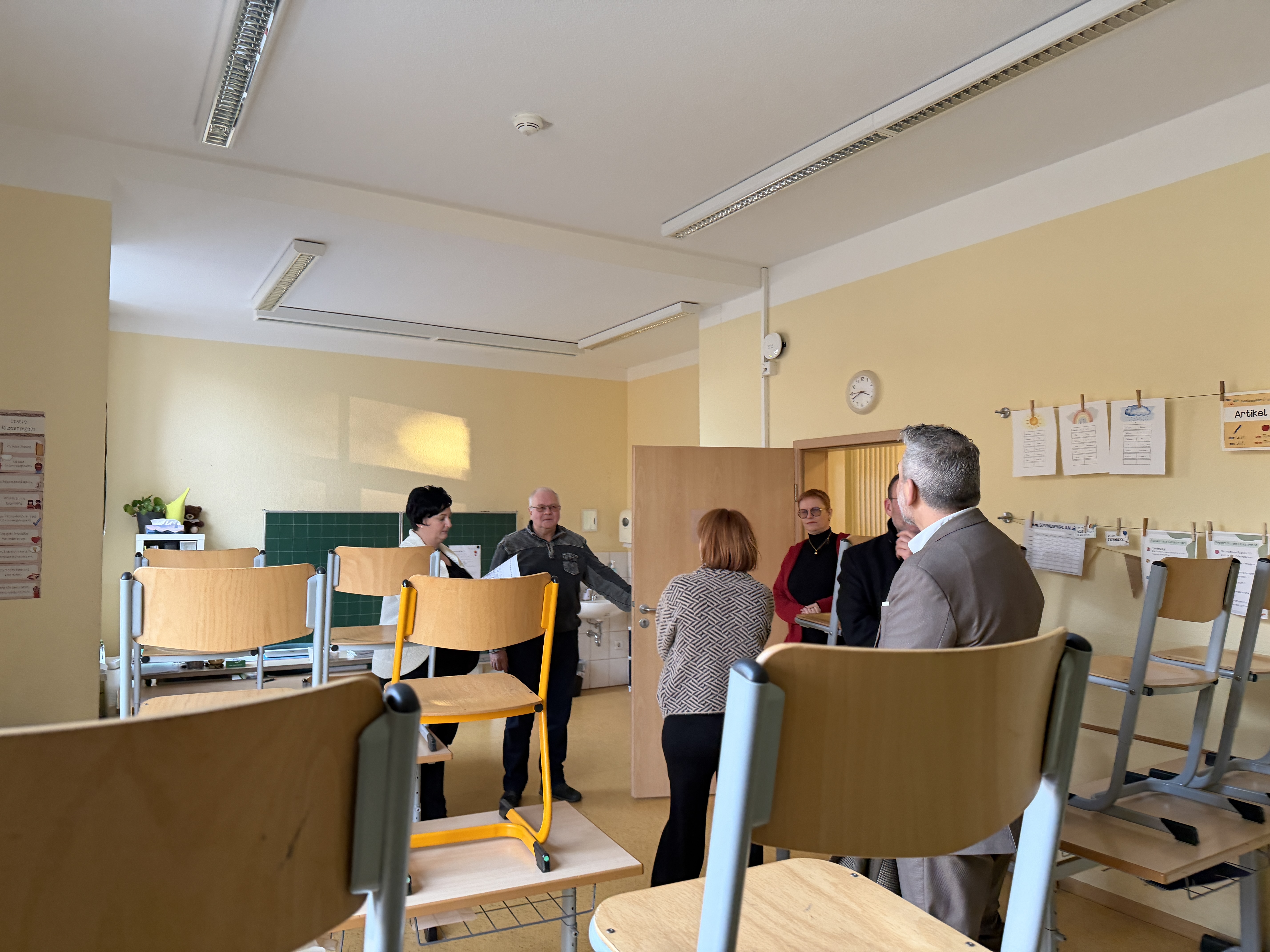 Im Anschluss führte der Besuch an die Grundschule in Bad Langensalza. Aktuell werden dort noch 55 Schülerinnen und Schüler unterrichtet. Nach Bekanntwerden der Schließungsabsicht kam es bereits zu zahlreichen Schulabmeldungen. Als Gründe für die Schließungen wurden seitens des Schulträgers unter anderem sinkende Schülerzahlen, der Wettbewerb mit anderen Schulen sowie eine nicht auskömmliche staatliche Finanzhilfe bei beiden Schulen genannt.