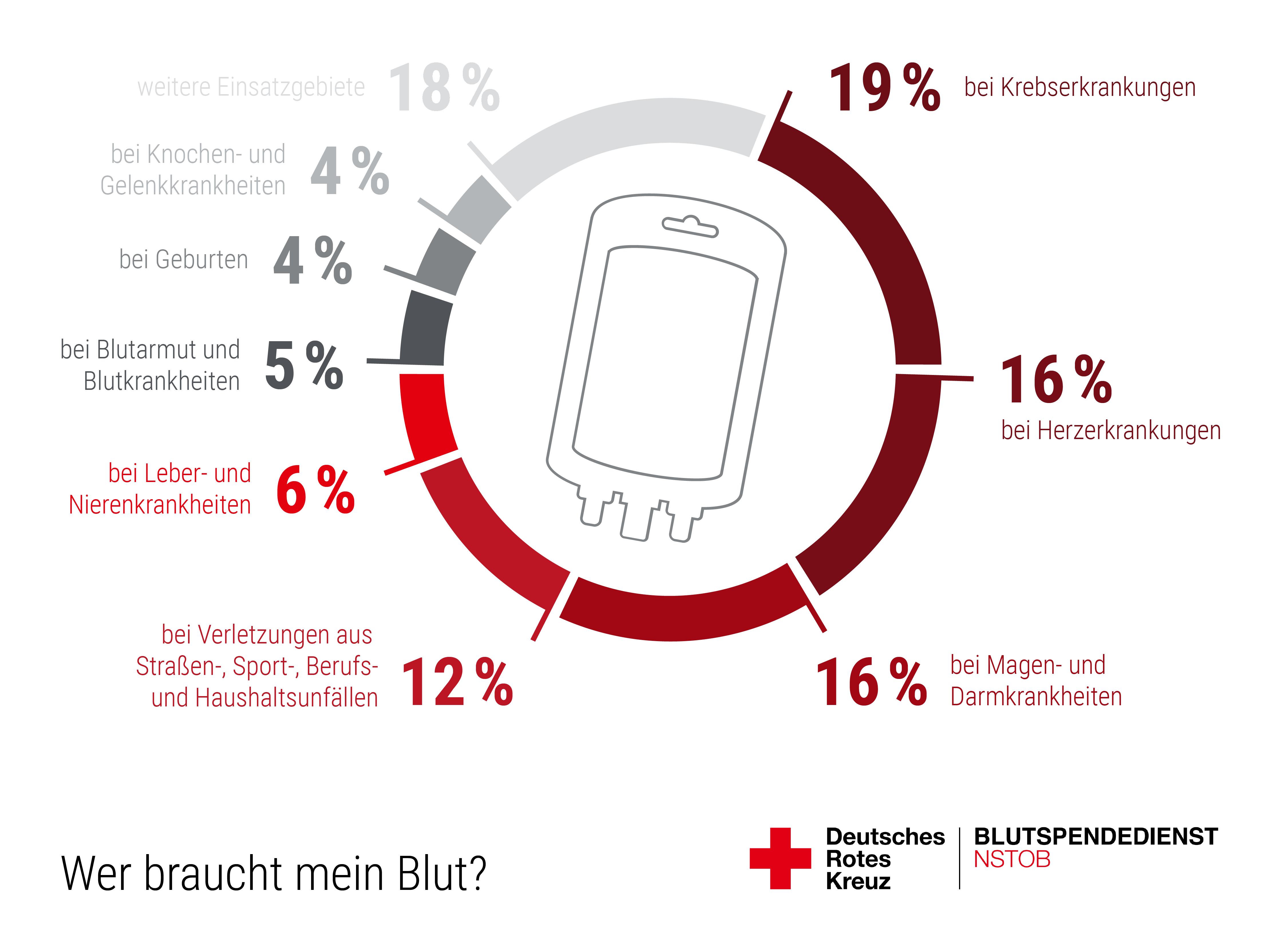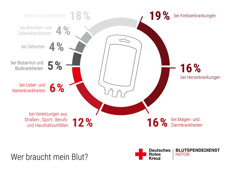 Blut ist durch nichts ersetzbar und kann nicht künstlich hergestellt werden. Tagtäglich werden in Deutschland jedoch etwa 15.000 Blutkonserven benötigt, um die Versorgung bei Notfällen und schweren Unfällen, bei Operationen, in der Krebstherapie oder für Menschen mit chronischen Erkrankungen sicherzustellen. Rund 70 % der Menschen benötigen einmal in ihrem Leben Spenderblut oder damit hergestellte Arzneimittel – dem gegenüber stehen 3 % der deutschen Bevölkerung die regelmäßig Blut spenden.