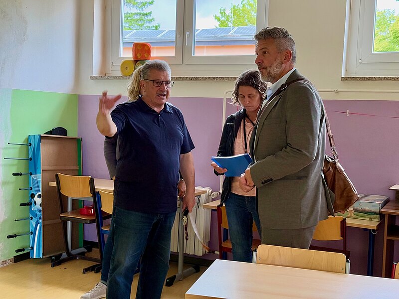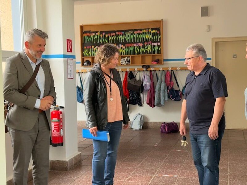 Schulleiter Michael Zimmermann und Hortkoordinatorin Ulrike Hartmann führten die Delegation durch die Schule, in der derzeit 106 Kinder aus Schönstedt und den umliegenden Gemeinden in sieben Klassen unterrichtet werden.