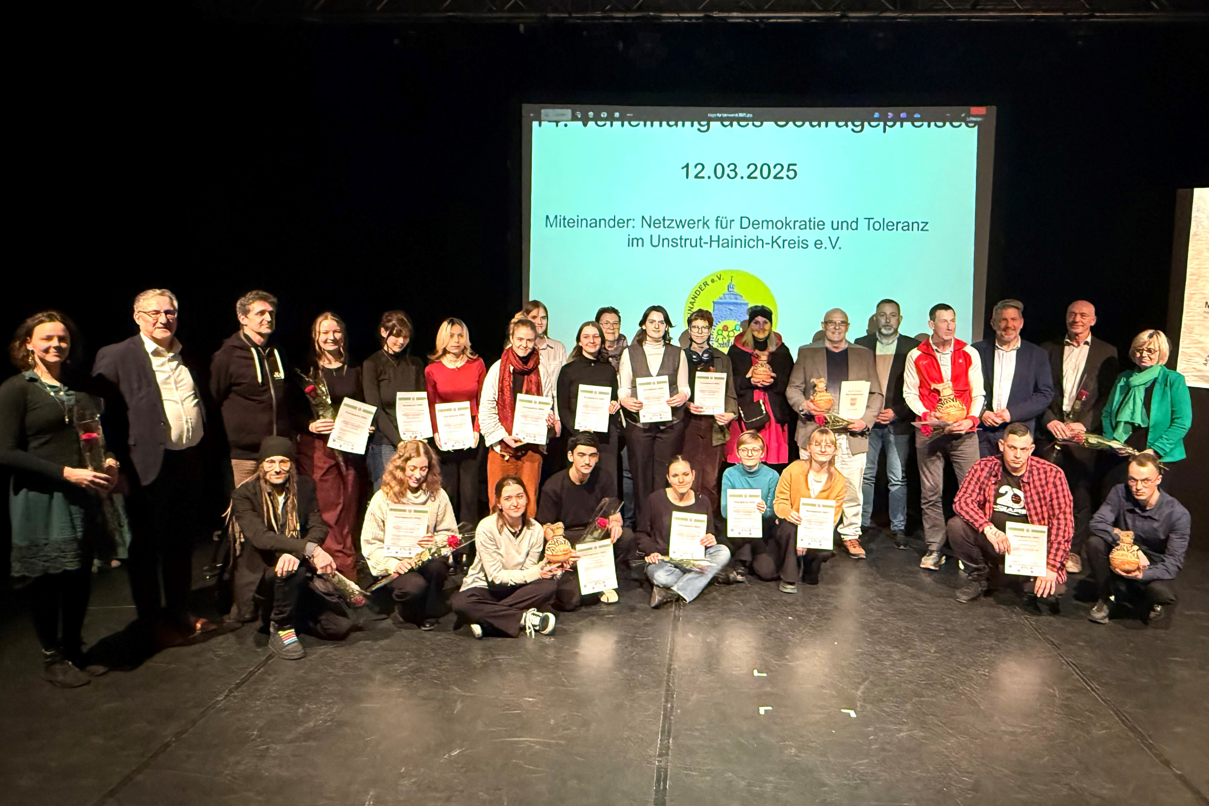 Am 12. März 2025 wurde bereits zum 14. Mal der Couragepreis des Vereins „Miteinander e.V.“ verliehen. Die Preisverleihung, die im festlichen Rahmen im 3K Theater stattfand, würdigte Menschen, Vereine und Initiativen aus dem Unstrut-Hainich-Kreis, die sich in besonderer Weise für andere engagierten und dabei Courage gezeigt haben. Zahlreiche Gäste folgten der Einladung des Vereins, um der Preisverleihung beizuwohnen. Die Veranstaltung wurde vom Vereinsvorsitzenden Bernd Münzberg und dem stellvertretenden Vorsitzenden Erhard Stiefel offiziell eröffnet.