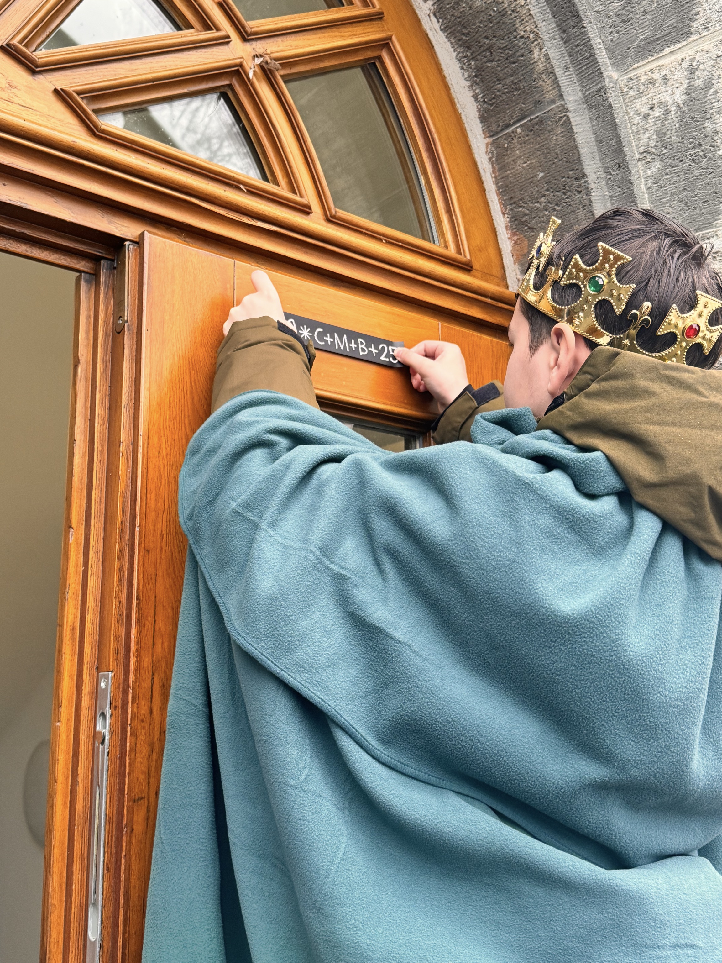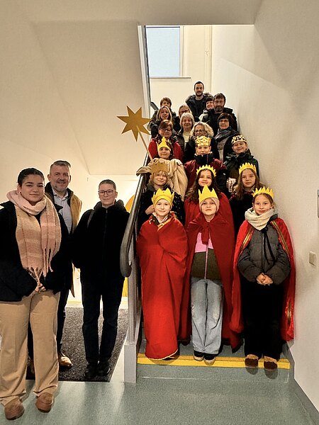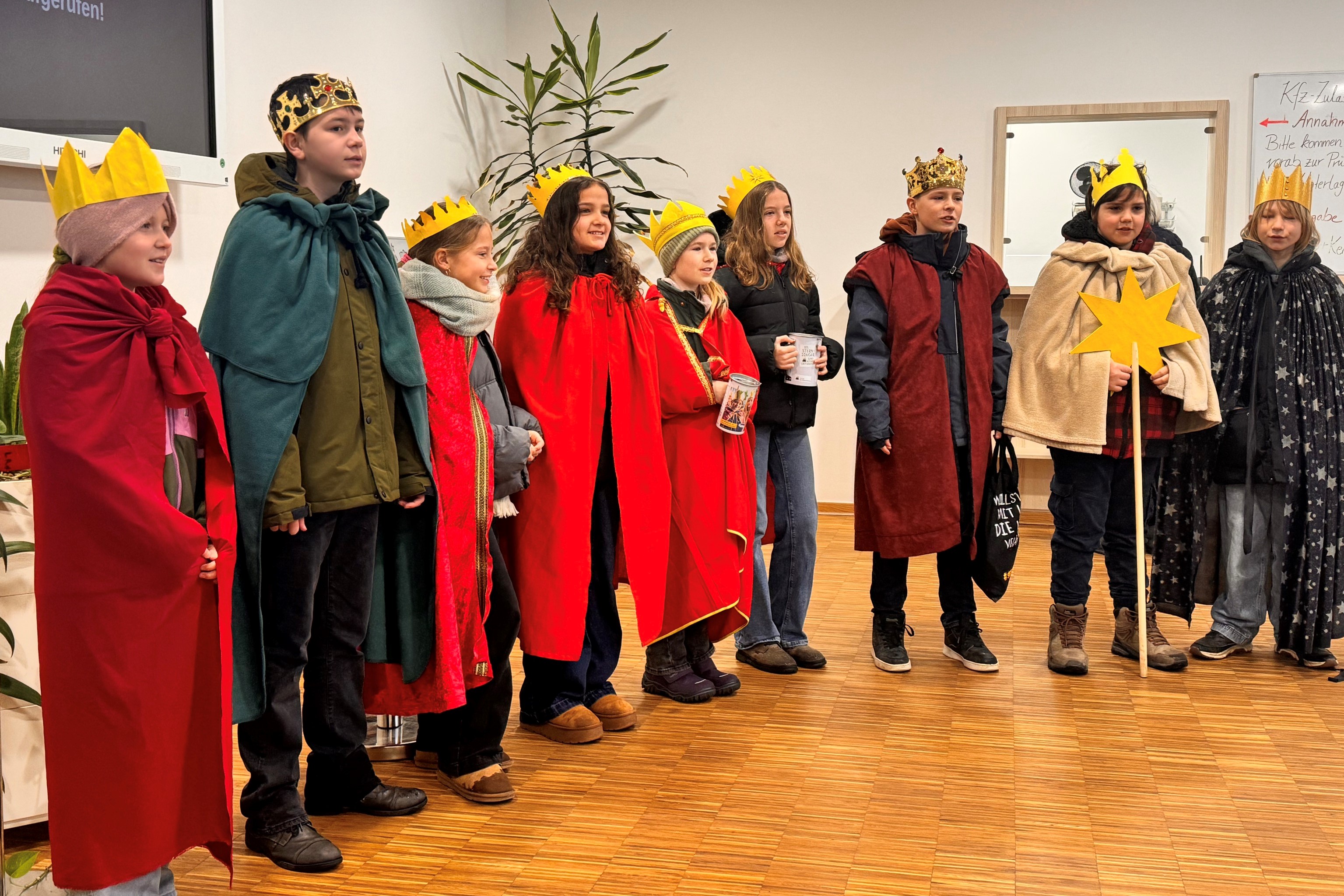Aufgrund des unfreundlichen Wetters entschieden sich die Kinder, ihre Auftritte kurzerhand in die Flure der Häuser sowie den Wartebereich des Fachdienstes Straßenverkehr zu verlegen. Viele Kolleginnen und Kollegen nahmen sich die Zeit, den Darbietungen der Sternsinger zuzuhören, gaben ihre Spende ab oder verteilten kleine Süßigkeiten. Im Gegenzug erhielten die Gebäude und Büros den traditionellen Segen für das Haus, der zum Teil von den Kindern direkt angebracht wurde. Die Buchstaben C, M und B standen ursprünglich für die Namen der Heiligen Drei Könige: Caspar, Melchior und Balthasar, werden jedoch mittlerweile auch als lateinische Worte „Christus Mansionem Benedicat“ – Christus segne dieses Haus – interpretiert.