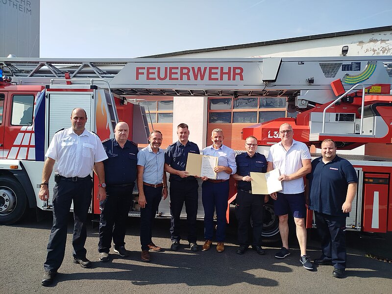 „Die Sicherheit der Einsatzkräfte bei der Verwendung der Drehleiter konnte nicht mehr gewährleistet werden – daher bestand hier dringender Handlungsbedarf. Es war wichtig, dass wir als Landkreis gemeinsam mit der Stadt Nottertal-Heilinger Höhen eine gute Lösung für den Brandschutz gefunden haben. Sowohl die Investition in eine neue Drehleiter als auch in moderne Drohnentechnik ist wichtig, um die Arbeit unserer ehrenamtlichen Kameradinnen und Kameraden zu erleichtern und zu unterstützen. Man hofft zwar immer, dass diese Technik möglichst selten zum Einsatz kommt, aber wenn es darauf ankommt, muss unsere Feuerwehr bestmöglich ausgestattet sein.“ So Landrat Thomas Ahke
